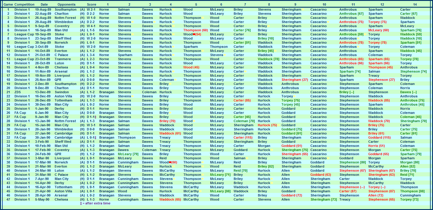 Excel Spreadsheet Version of Statistics: Season 1989/90