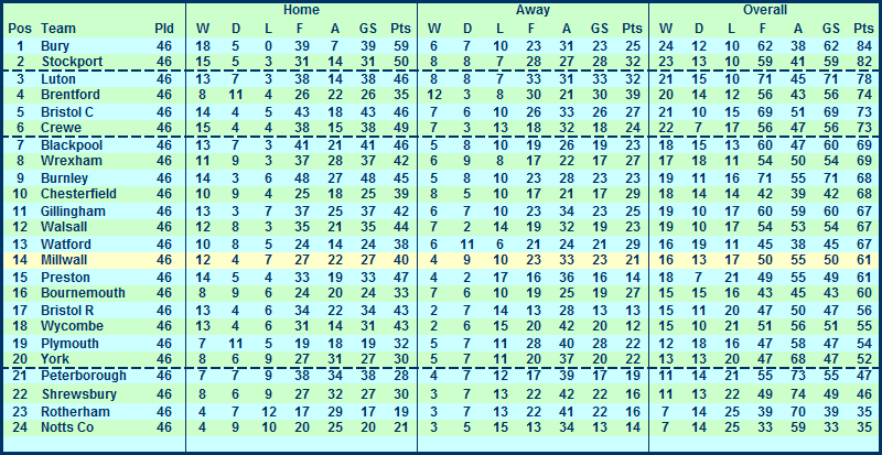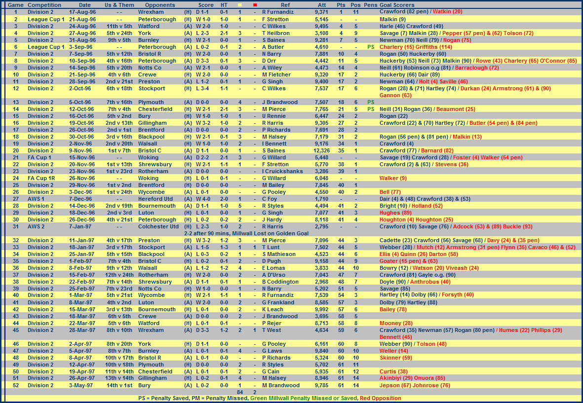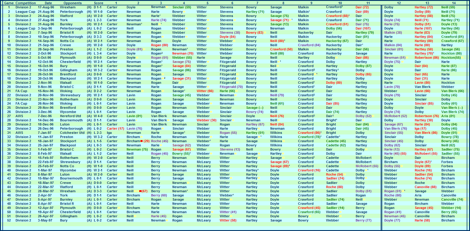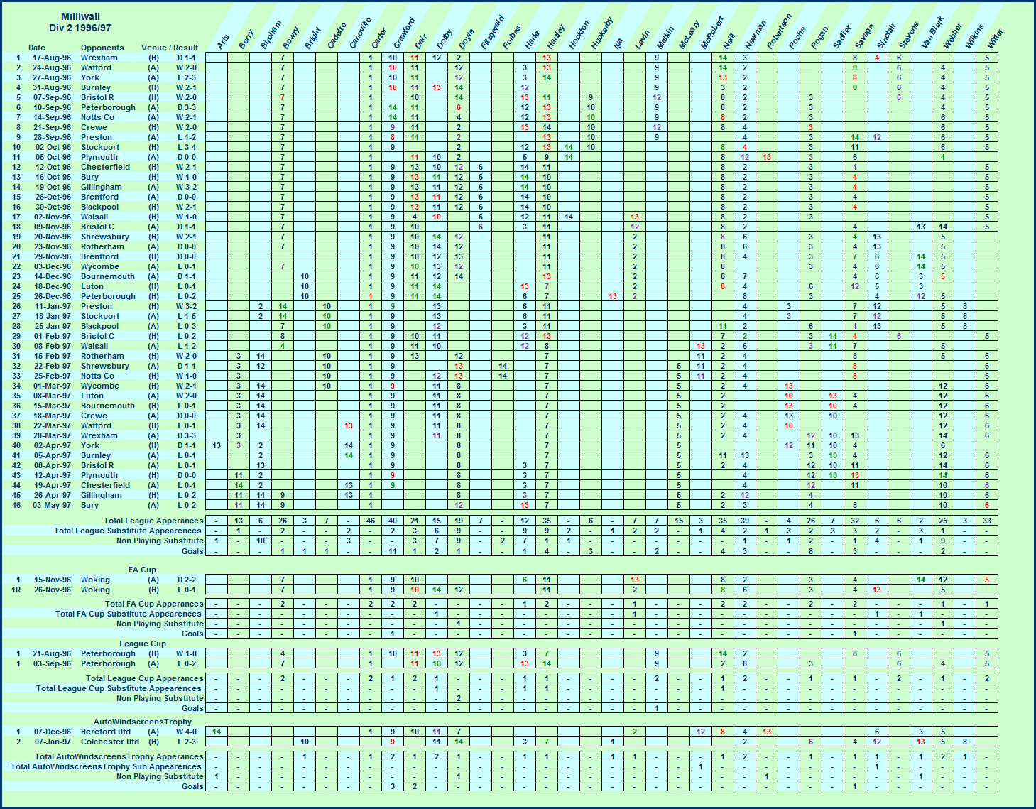 Excel Spreadsheet Version of Statistics: Season 1996/97