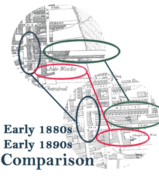 the 1894 map between the Walker's Iorn Works and the Glengall Iron works