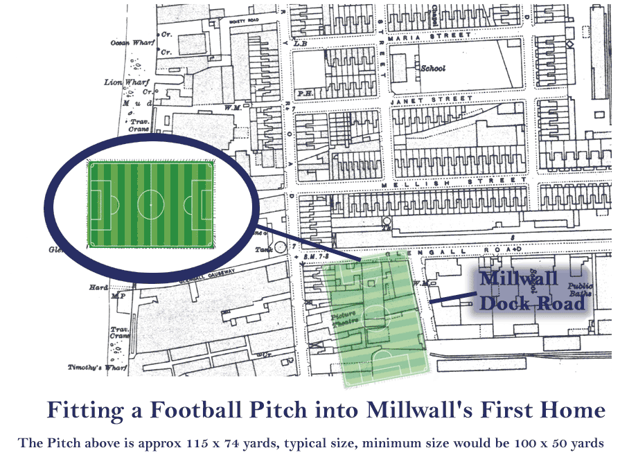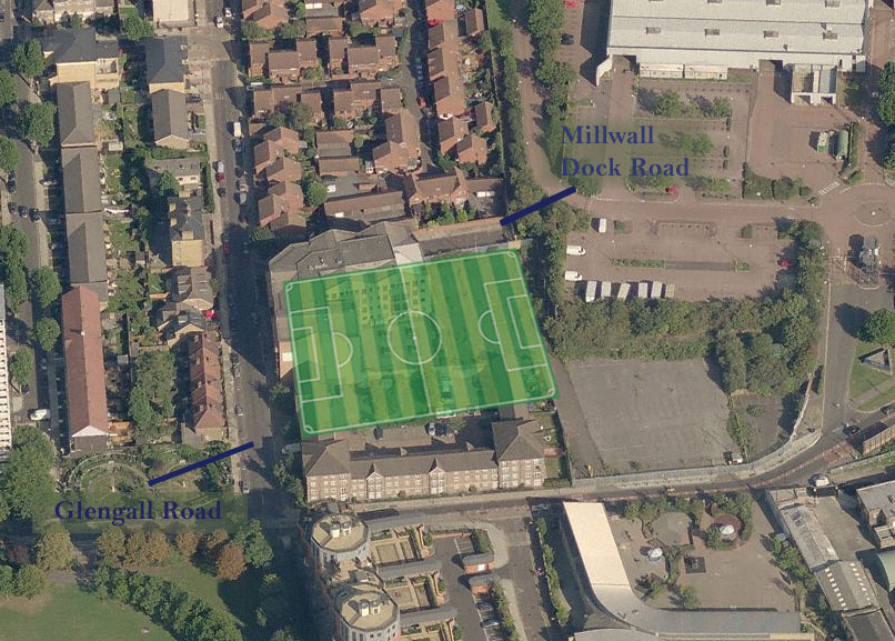 First Millwall pitch would be to the West of Millwall Dock Road on the site of