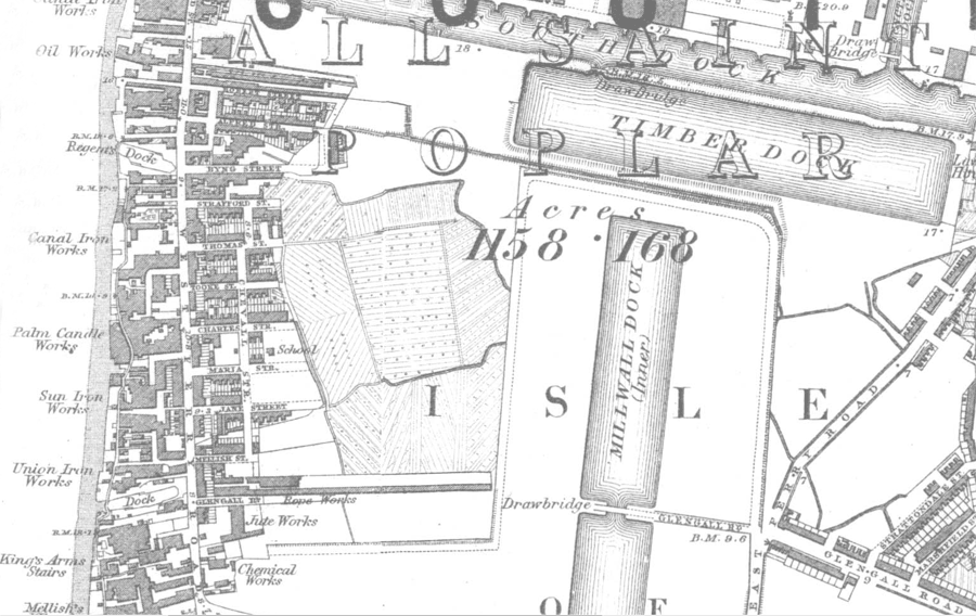 be a pre-1885 feature. It ran down to the boundary of the Millwall Dock