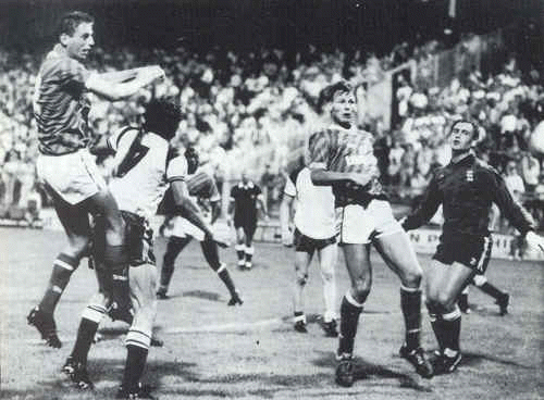 As early as the second minute Lawrence got on the end of a Sean Sparham cross for a bullet header that was brilliantly saved low down, Banks-like, by Tony Godden. Young full-back Sparham, commendably two-footed and adding a welcome area of composure in the cauldron, was unhappily at fault when Birmingham took a shock fourth-minute lead through Tony Rees. Millwall merely stepped on the gas. Sheringham chipped just wide; Godden palmed away a curling Cascarino shot and Sheringham just failed to make a proper connection with a Lawrence cross just under the bar. Godden pulled off another incredible save from a venomous header, Cascarino's this time, but the ball went to Lawrence, whose first-time shot found the net for the equaliser, through a crowd of players in the 33rd minute. Millwall, in their present mood, could have done without half time, upsetting as it did their momentum. That, plus Birmingham's ploy in bringing on Bird to help deal with the aerial assaults, |